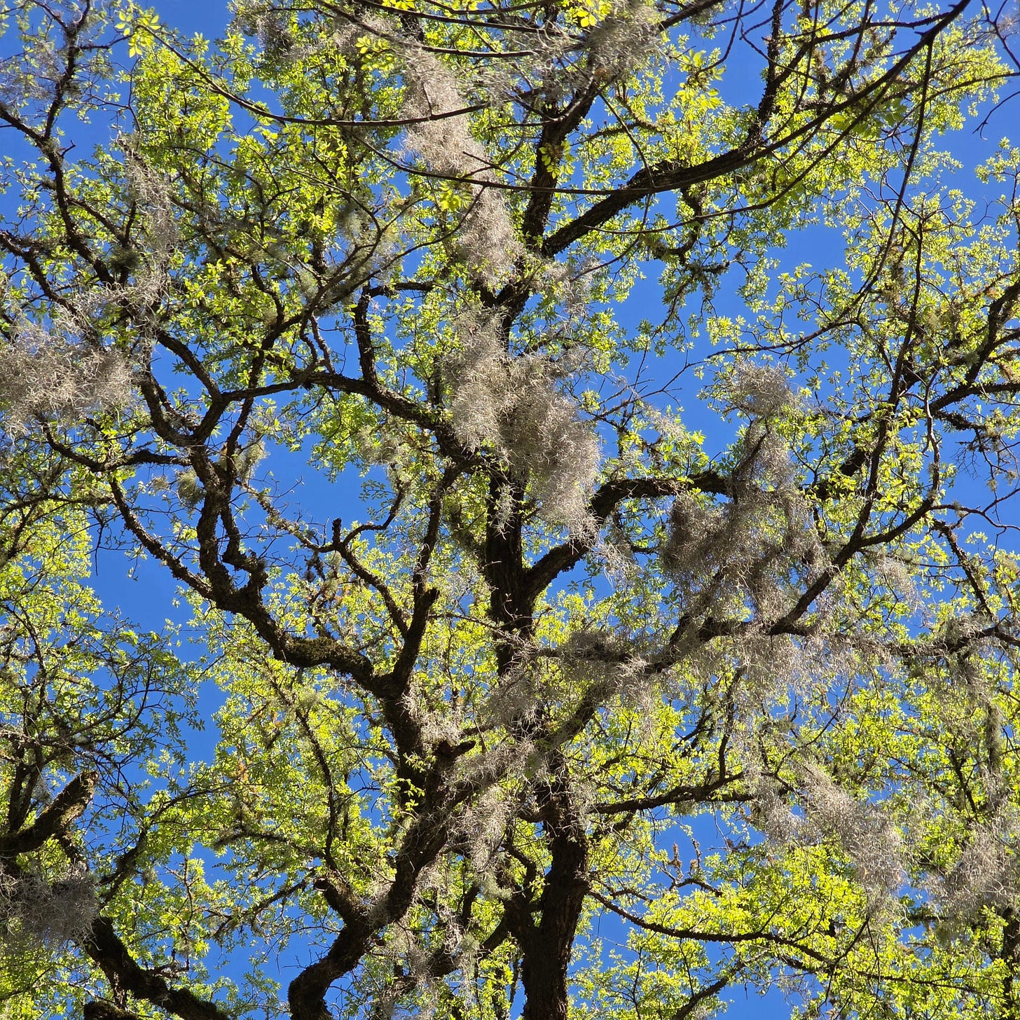 I know what we would find: fresh green shoots peeking through Spanish moss draped over the arms of the Bald Cypress trees like the feather boas of the 1950s. Southern Dewberry, open wide, their stamens eager for pollinators. And the buds of the Painted Buckeye, blushing pink at the end of bare sticks.
